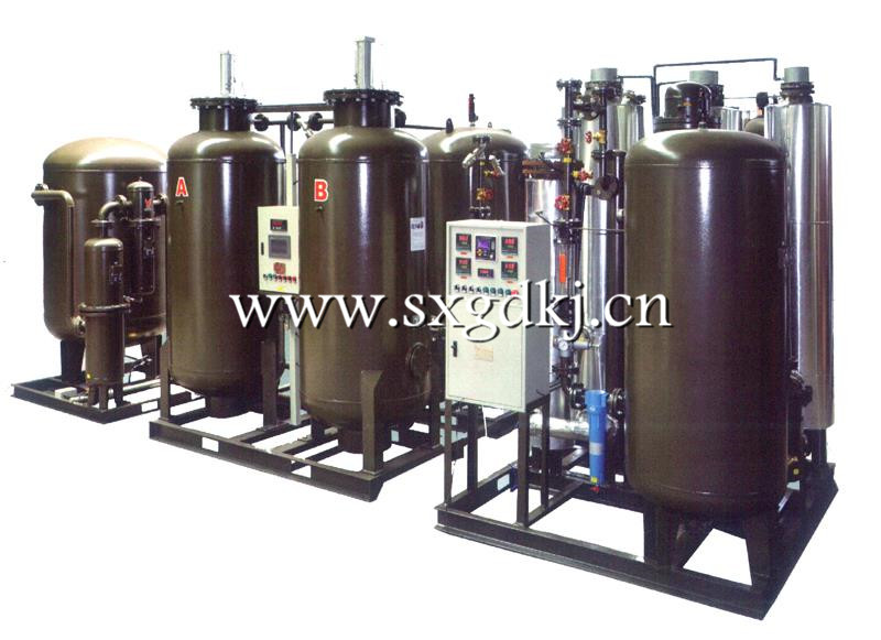 在一定温度上,氮气中的残氧与碳载催化剂提供的碳发生氧化反应,生成二氧化碳经变压吸附工艺去除,再经过高密度过滤器后,得到高纯度氮气。