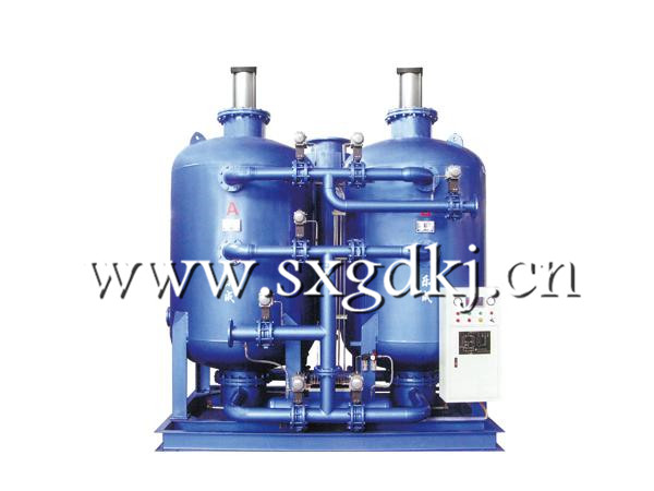 变压吸附空分制氧装置的吸附床必须包含两个操作步骤:吸附和解吸。为了连续获得产品气通常在制氧装置中都装置两个以上的吸附床,并且从能耗和稳定性的角度出发,另外设置一些必要的辅助步骤。每个吸附床一般都要经历吸附、放压、抽空或减压再生、冲洗置换和均压升压等步骤,周期性的重复操作。在同一时间内,各个吸附床则分别处于不同的操作步骤,在PLC的控制下定时切换,使几个吸附床协调才做,在时间步伐上则相互错开,使变压吸附装置能够平稳运行。连续获得产品气。对于实际的分离过程,还必须考虑空气中其它微量组份。二氧化碳和水分在通常的吸附剂上的吸附能力一般要比氮和氧都大的多,可在吸附床内填加合适的吸附剂(或利用制氧吸附剂自身)使其被吸附清楚。